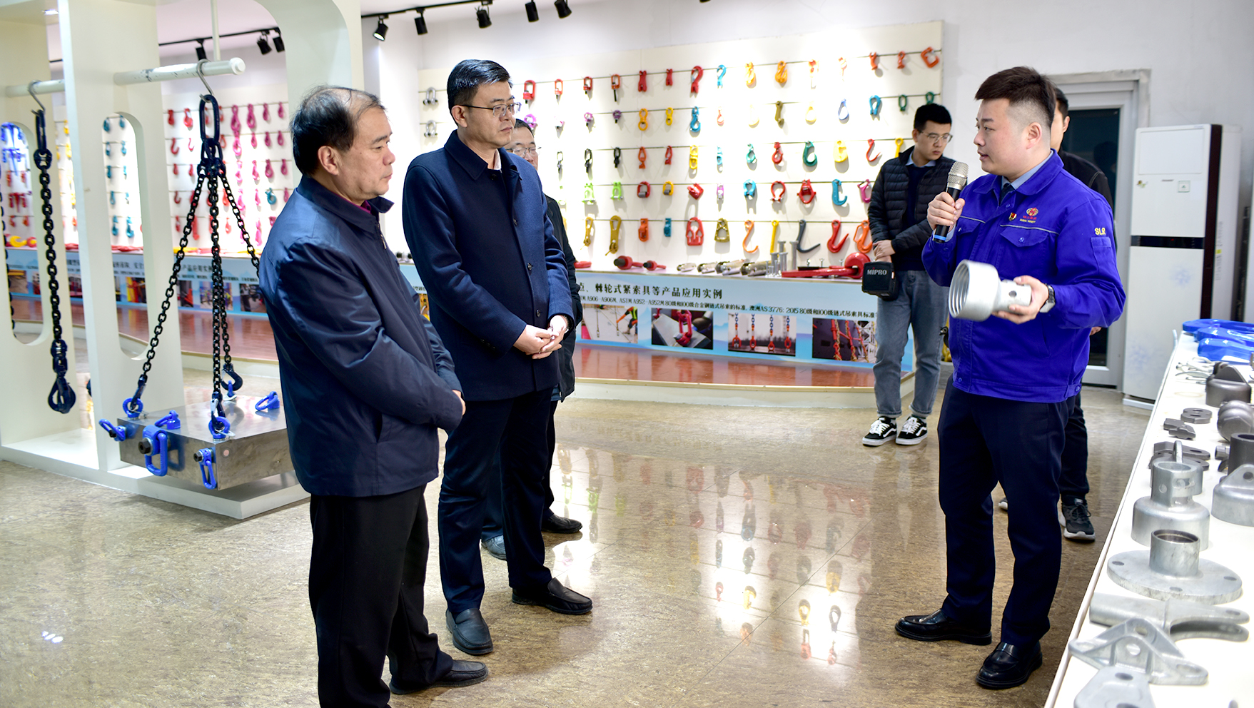调研组成员首先在公司总经理杜大平、助企攀登干部冯超等领导陪同下在公司锻造分厂现场查看自动化生产线,在机加工分厂实地观摩了获得2020年度“十佳”工业技术改造的“传统制造产业MES数字化生产技术提升项目”改造现场。在公司产品展厅,杜总向调研组详细介绍了公司产品的研发生产情况、应用场所,并将未来产品升级发展走向进行了汇报。