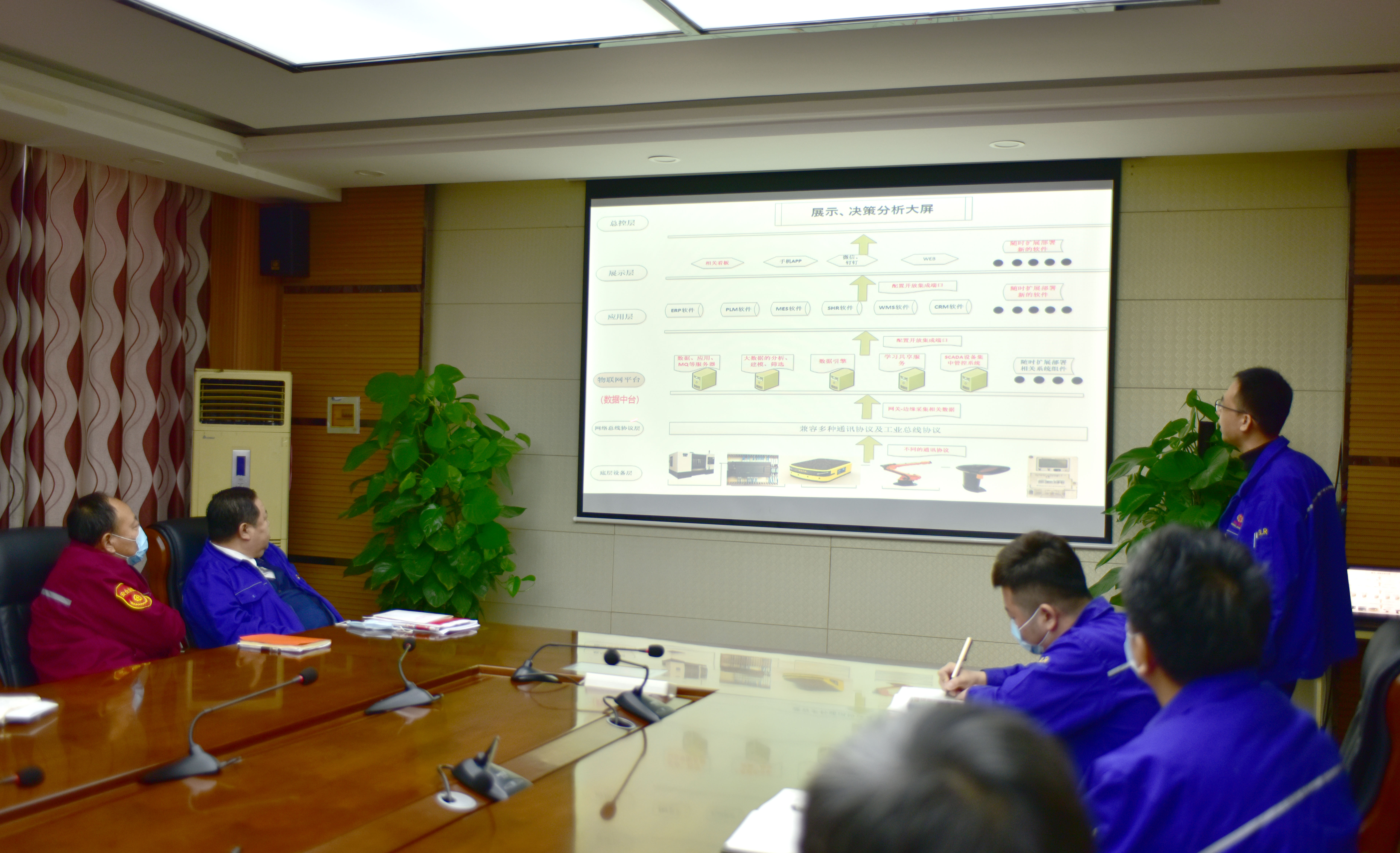 为响应国家“十四五”信息化和工业化深度融合发展规划的要求,进一步推动万象城体育索具数字化转型升级,统一思想、明确目标,根据公司领导安排,11月29日,万象城体育索具信息中心主任孟海亮在公司周一例会上向大家进行了公司信息化的总体架构、转型目标及“531”战略计划分享汇报。董事长杜亚中、总经理杜大平、常务副总杨永海等公司领导出席会议。