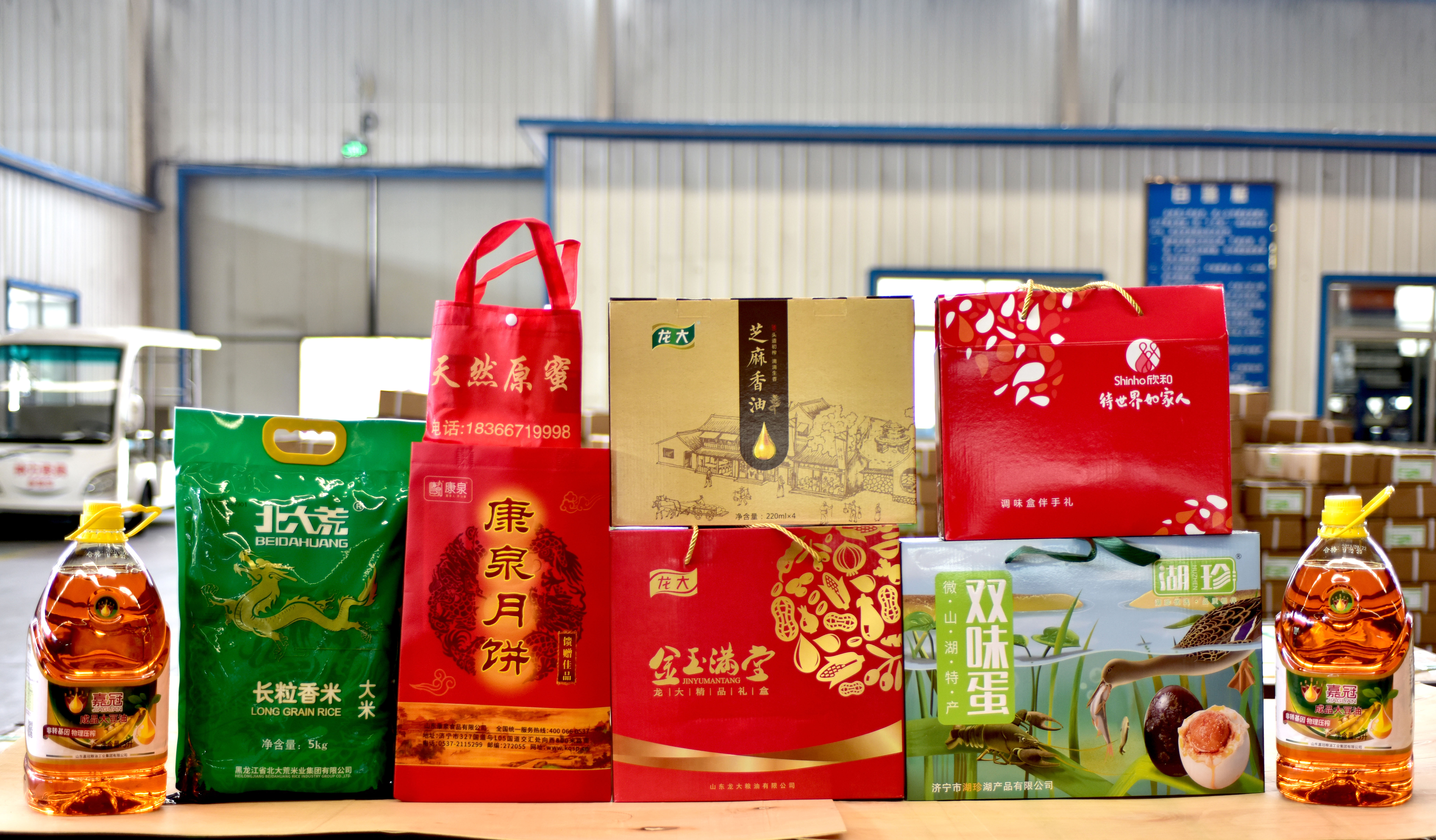 公司总经理杜大平精心挑选了康泉月饼、长粒香米、天然原蜜、调味品、嘉冠大豆油、双味蛋、龙大粉丝、芝麻香油共八款节礼。柴米油盐,人间烟火,情深意切,满是真情!