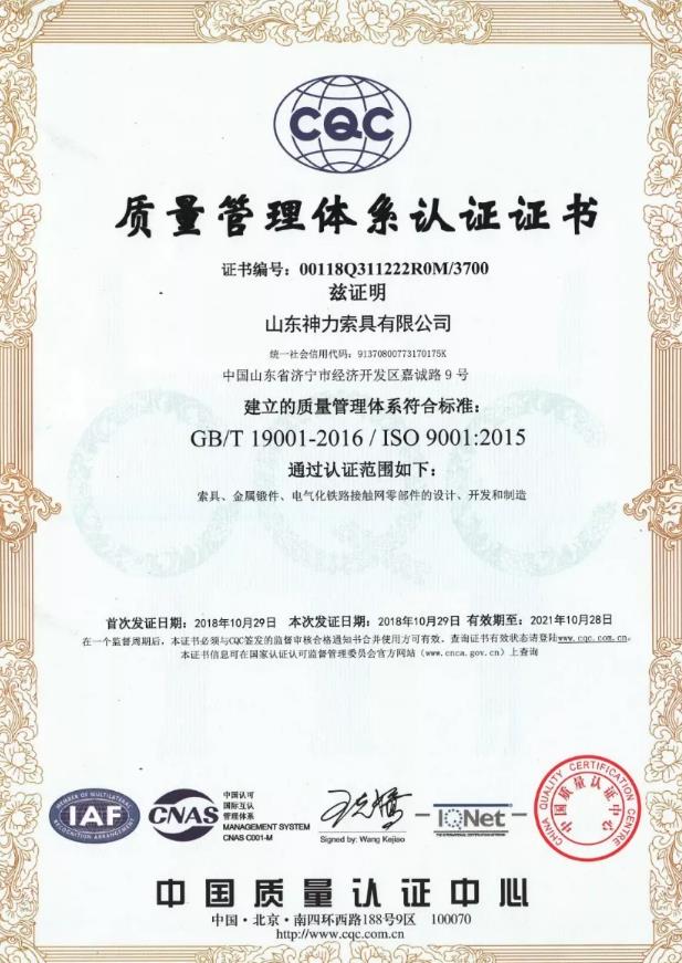 质量管理体系认证证书