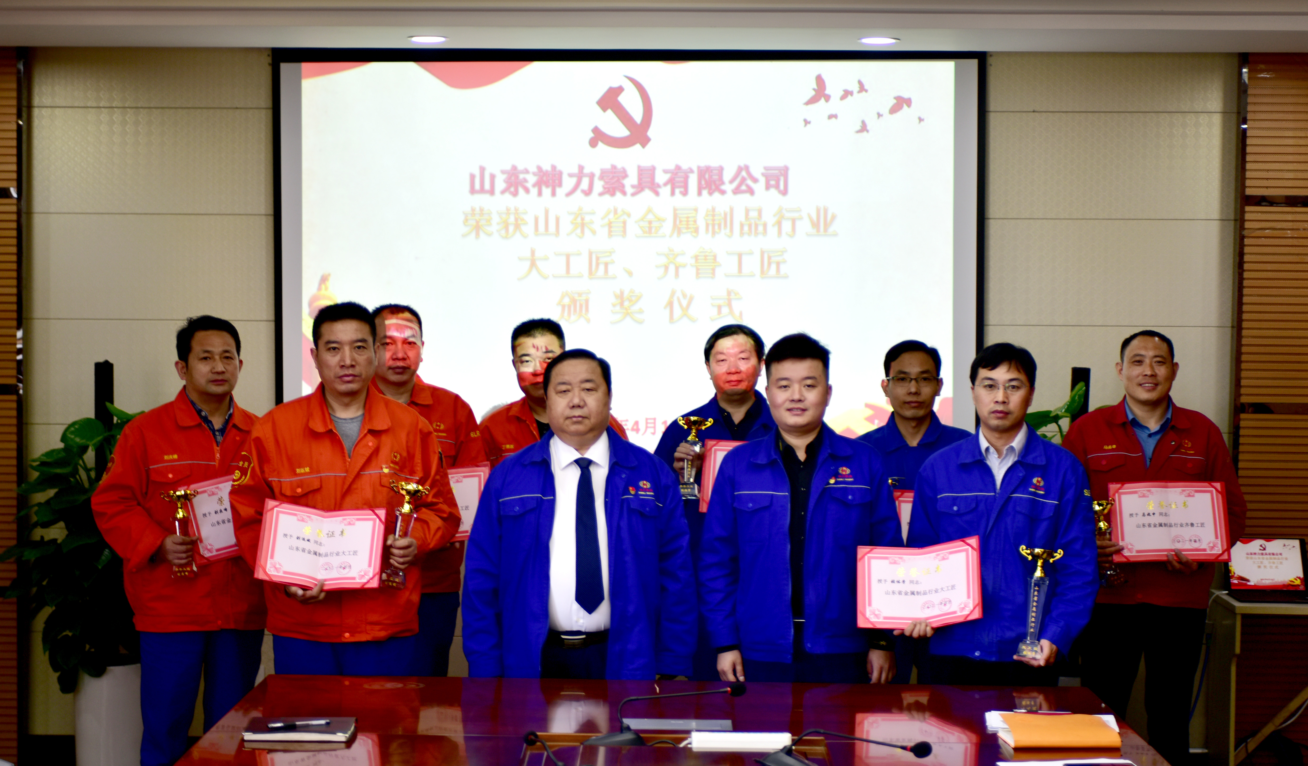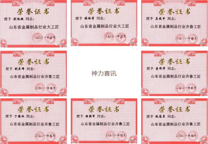 为深入贯彻习近平新时代中国特色社会主义思想,全面落实新时期产业工人队伍建设改革目标任务,积极营造尊重知识、尊重人才的氖围,提高广大员工对“工匠精神”的认识,建设知识型、技能型、创新型劳动者大军。4月19日上午,公司董事长杜亚中、总经理杜大平在公司办公楼为“山东省金属制品行业大工匠、齐鲁工匠”获得者颁发了荣誉证书和奖杯。