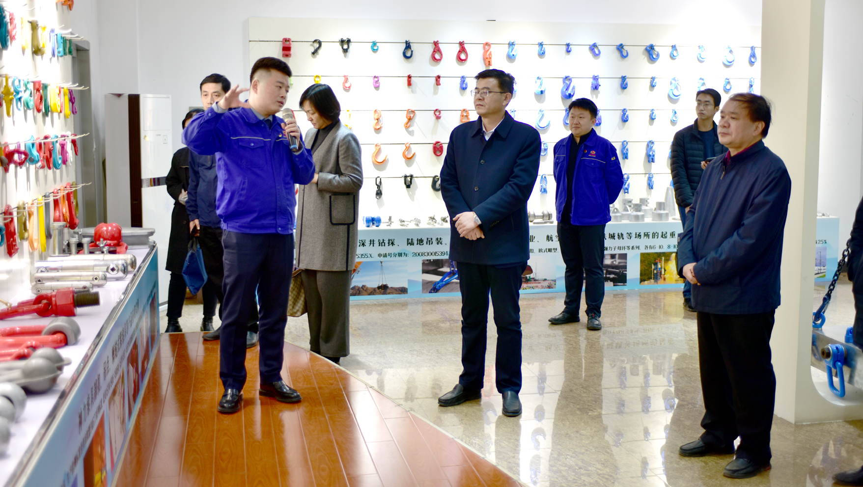 调研组成员首先在公司总经理杜大平、助企攀登干部冯超等领导陪同下在公司锻造分厂现场查看自动化生产线,在机加工分厂实地观摩了获得2020年度“十佳”工业技术改造的“传统制造产业MES数字化生产技术提升项目”改造现场。在公司产品展厅,杜总向调研组详细介绍了公司产品的研发生产情况、应用场所,并将未来产品升级发展走向进行了汇报。