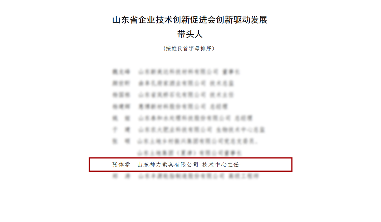 近日,2022年山东省企业技术创新促进会企业技术创新奖评选结果揭晓。万象城体育索具荣获“创新驱动发展突出贡献单位”;万象城体育索具报送的“120级吊装索具技术研发与应用”项目荣获“企业技术创新优秀成果三等奖”;万象城体育索具技术中心主任张体学荣获“创新驱动发展带头人”称号!