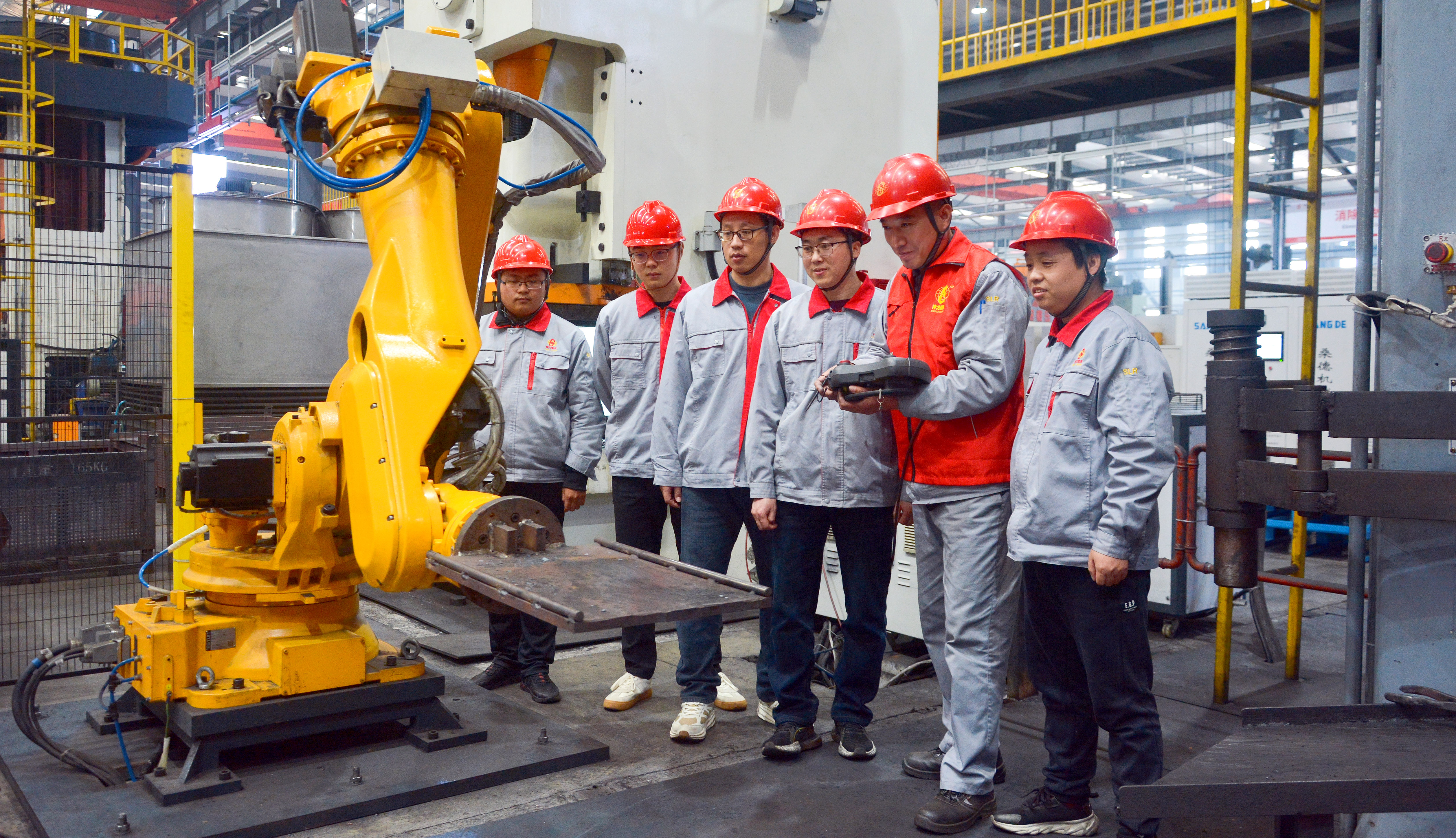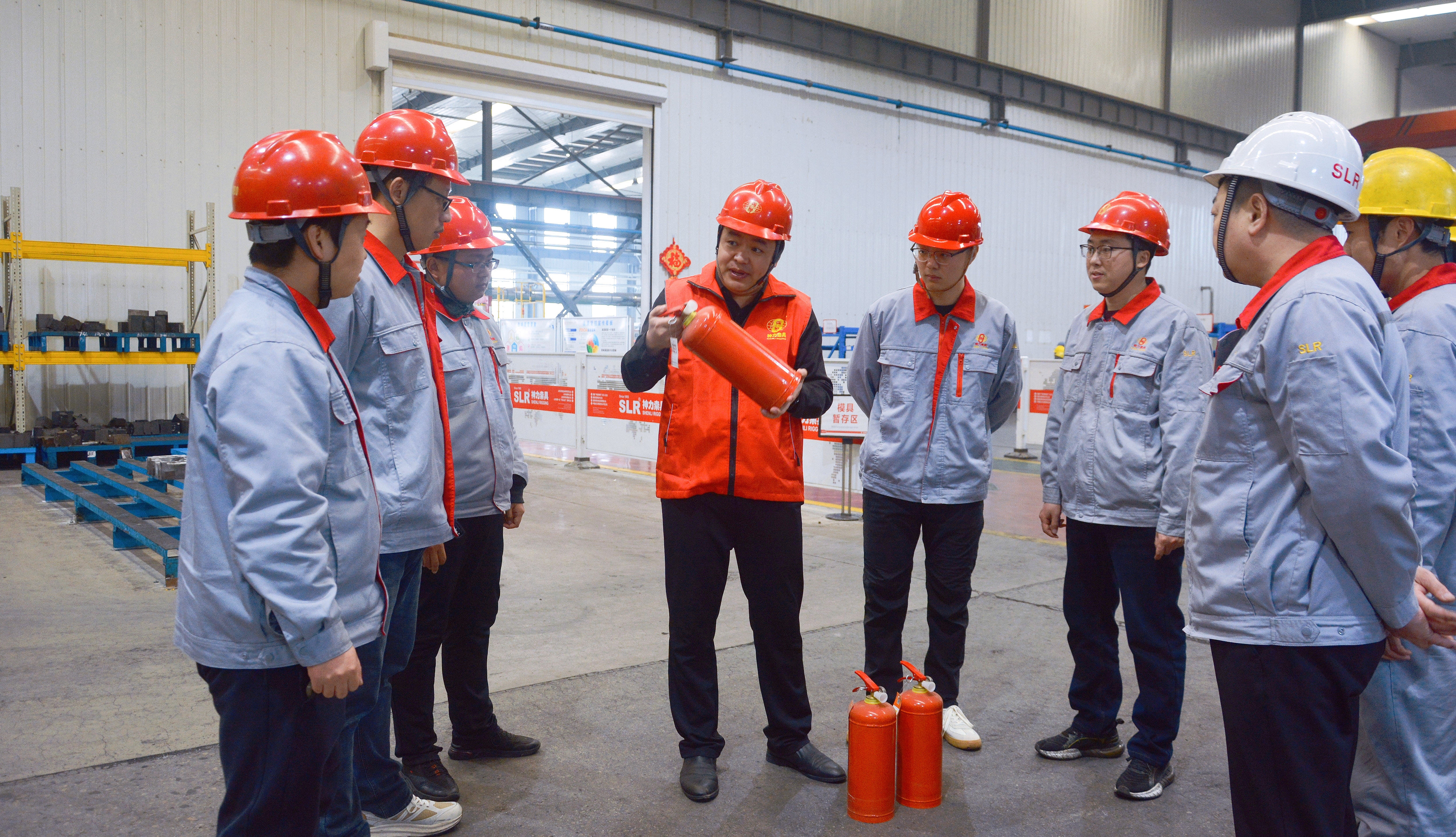 在万象城体育索具智能制造产业园,齐鲁工匠刘运斌向同事们介绍着机械臂的使用技巧,书写着智能制造场景下的技术传承新篇章。在立库车间工区,安全部部长狄英会在讲解着灭火器的使用方法。
