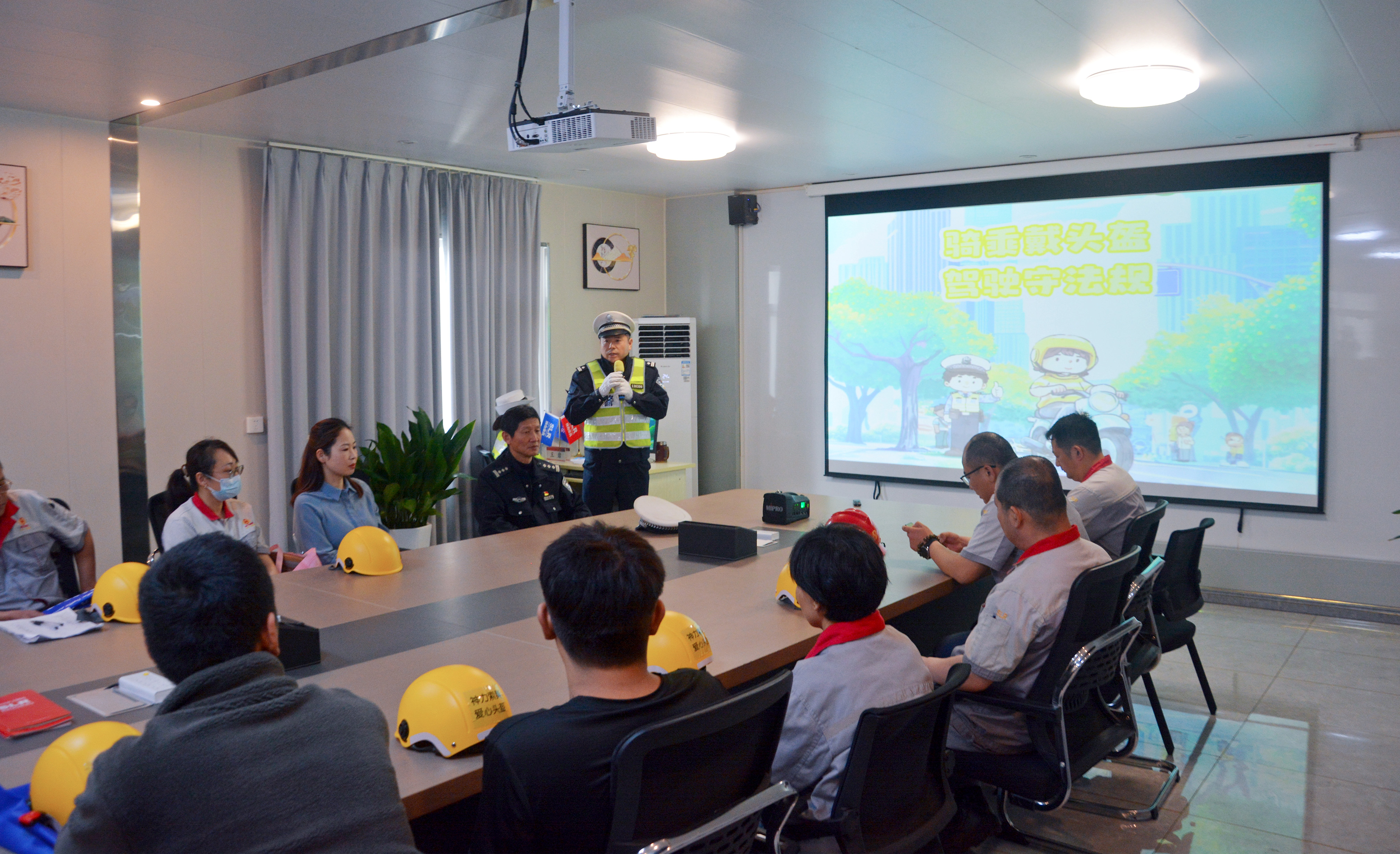 除了理论知识的传授,交警支队还为每位员工发放了骑行头盔。交警同志们严选的头盔质量可靠,防护性能良好,将在员工日常生活、工作中为他们提供有力的安全保障。培训过程中,员工们积极参与互动,纷纷表示此次培训内容丰富、实用性强,不仅学到了安全知识,还增强了自身的安全意识。