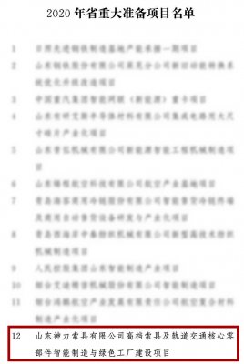2020年省重大准备项目名单中,万象城西甲联赛官方版-万象城西甲联赛 有限公司榜上有名,我公司提出的“高档索具及轨道交通核心零部件智能制造与绿色工厂建设项目”得到省市区各级政府的肯定和支持,成功...