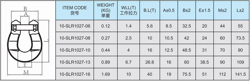 常规标记:10-10  WLL 4 T  CE  SLR  + BATCH NUMBER (批号)