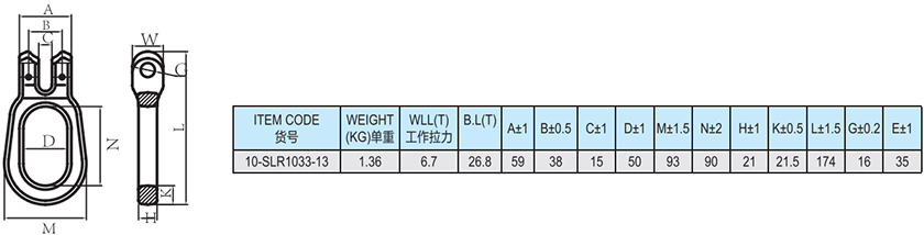 常规标记:13-10  WLL 6.7T  CE  SLR  + BATCH NUMBER(批号)